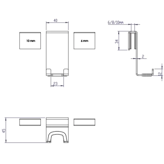 • регулируемое крепление, подходит для душевых кабин с толщиной стекла: 6 мм, 8 мм, 10 мм