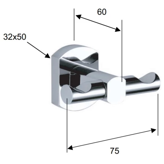 Крючок Remer Forma FR50CR двойной, для ванны, хром