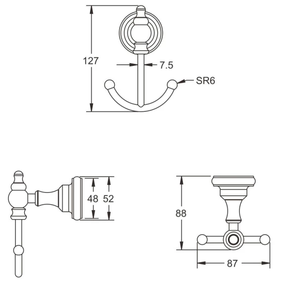 Крючок Rose RG1121Q двойной, для ванны, бронза