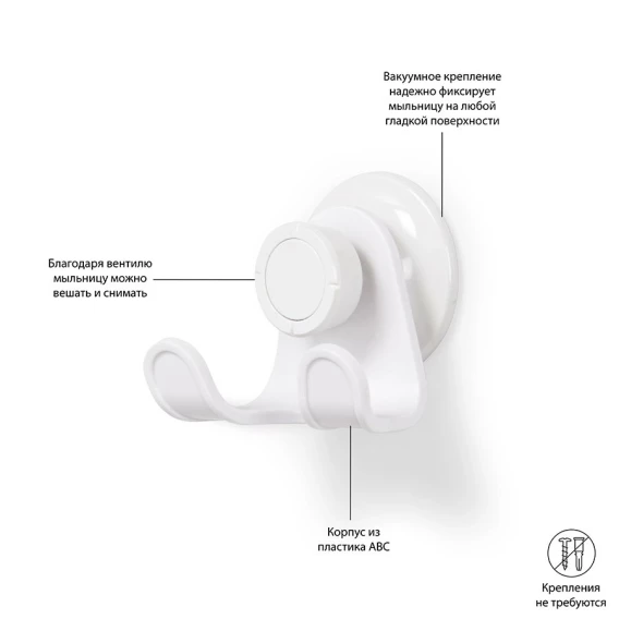 Дополнительное место для хранения в душе не бывает лишим. Всегда нужен ещё один крючок, чтобы повесить гостевое полотенце, дополнительный банный халат или просто уличную одежду. Двойной крючок Flex крепится к стене на специально разработанную присоску с запатентованной технологией Gel-Lock™. Крепление прочно удерживается на плитке, стекле и других гладких поверхностях. Вам не нужно будет сверлить стены, а если надобность в крючке пропадёт, вы сможете перевесить его на кухню или в спальню.Дизайнер Umbra Studio