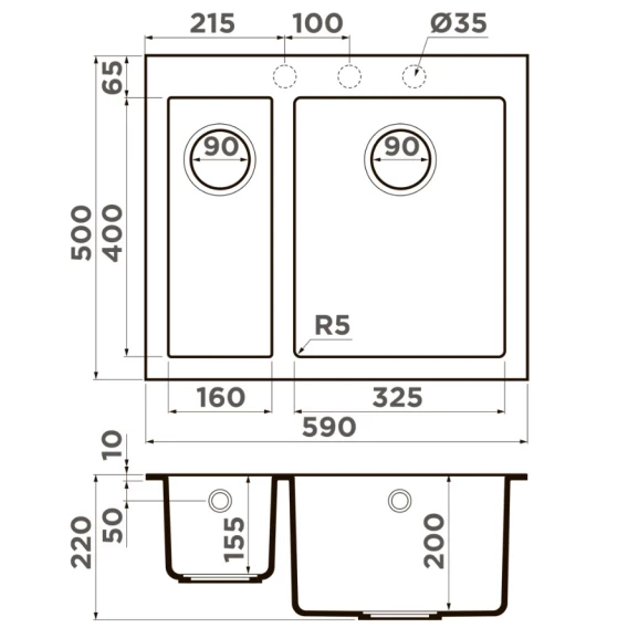 Кухонная мойка Artceramic Omoikiri Bosen 59-2A-GB графит 4993821
