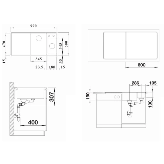 Кухонная мойка Blanco Axia III 6 S-F InFino черный 525853