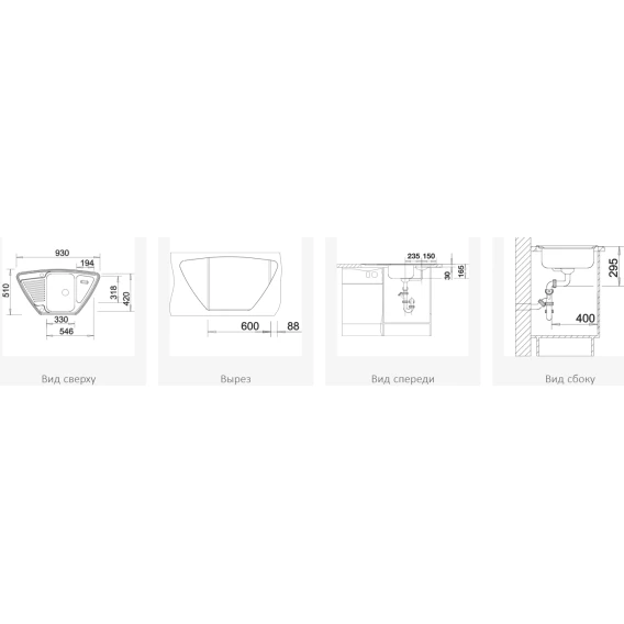 Кухонная мойка Blanco Tipo 9E 526338 93x51 см, матовая сталь