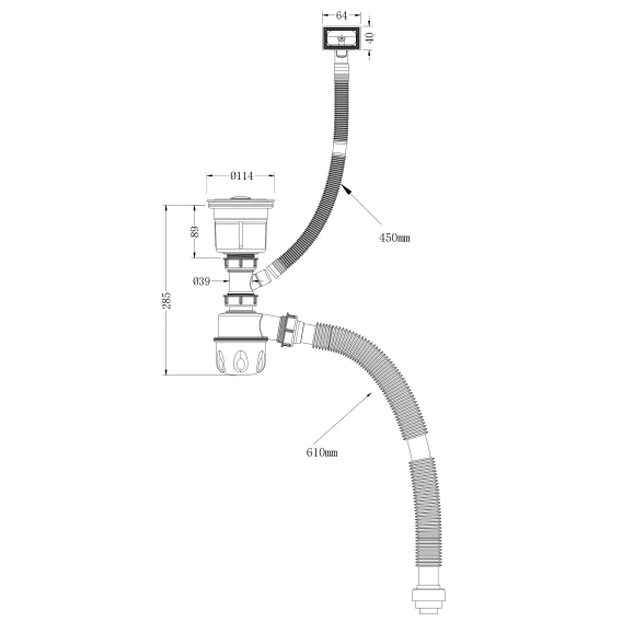Крепление, Решетка из нержавеющей стали, Отводная арматура с корзинчатым вентилем 3 1/2'', Дозатор, Сифон, Гофра