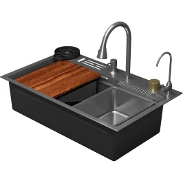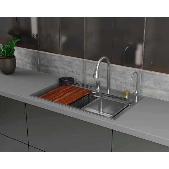 Коландер, Отводная арматура с корзинчатым вентилем 3 1/2'', Разделочная доска, Дозатор, Смеситель, Сифон, Гофра, Кран для чистой воды, Ринзер