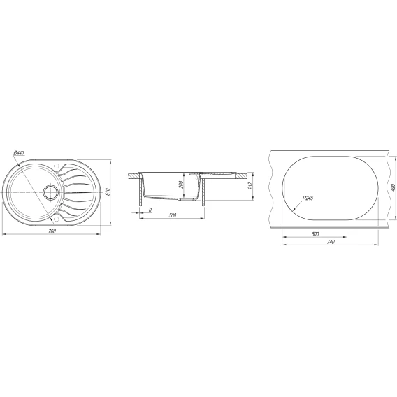Кухонная мойка Dr.Gans Берта 760 25.040.C0760.409 76x51 см, базальт
