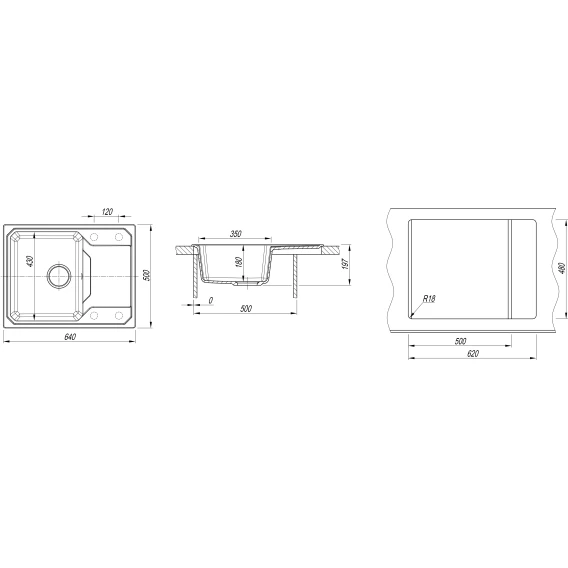 Кухонная мойка Dr.Gans Кардинал 640 29.030.C0640.407 64x50 см, черный