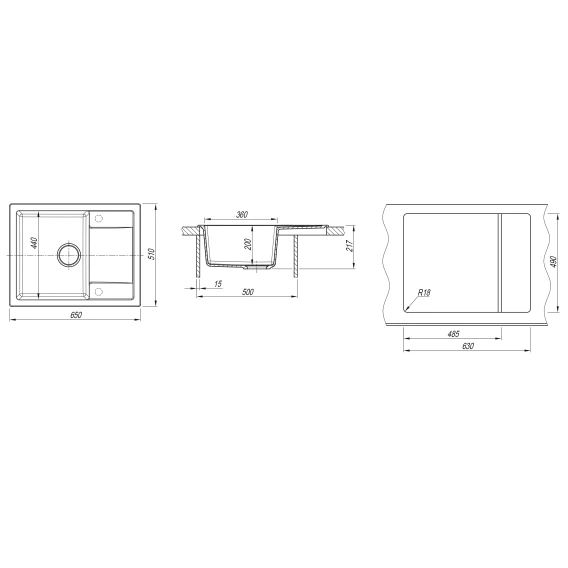 Кухонная мойка Dr.Gans Техно 650 25.030.C0650.407 65x51 см, черный