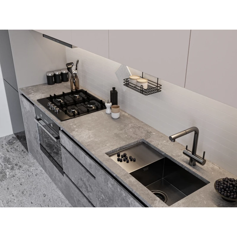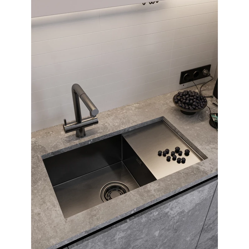 Кухонная мойка Emar EMB-124 PVD Nano Dark 70x40 см, вороненая сталь