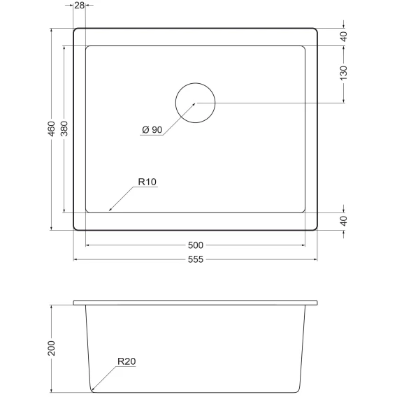 Кухонная мойка Emar Quartz EMQ-1555.P 55,5x46 см, морион