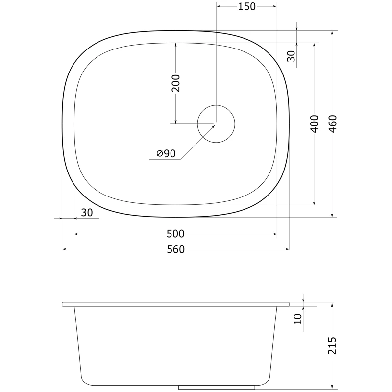 Кухонная мойка Emar Quartz EMQ-1560.P 56x46 см, барит