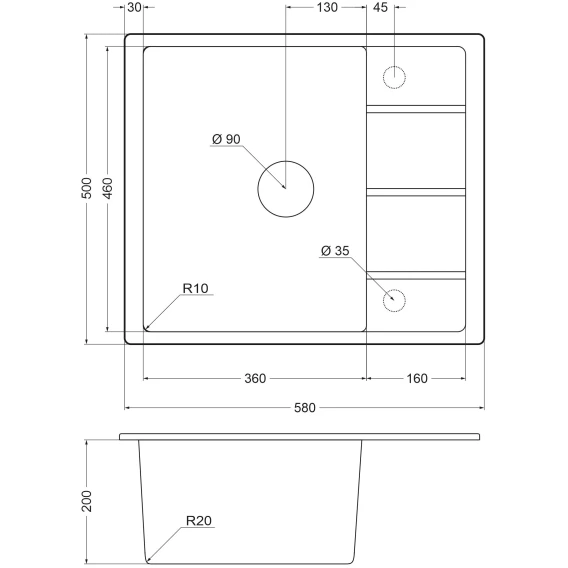 Кухонная мойка Emar Quartz EMQ-1580.Q 58x50 см, оникс