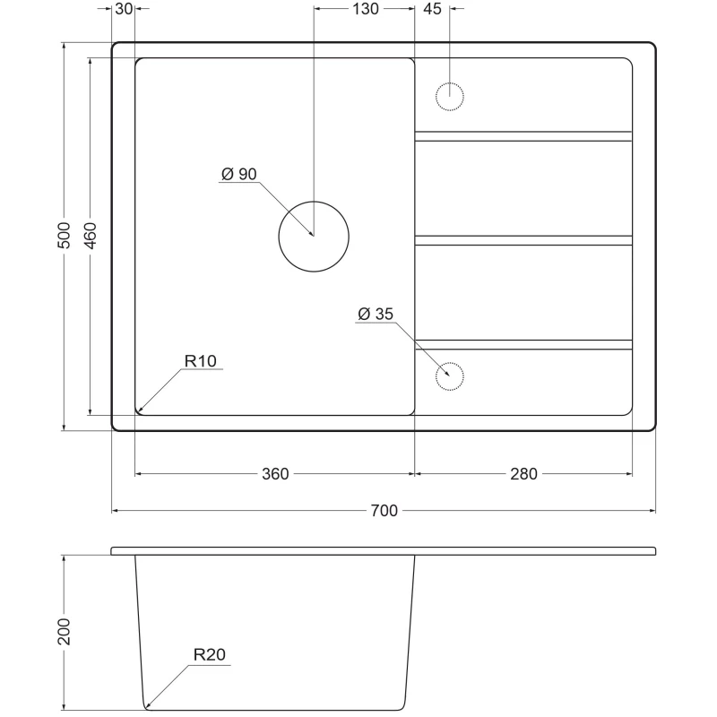 Кухонная мойка Emar Quartz EMQ-1700.Q 70x50 см, морион