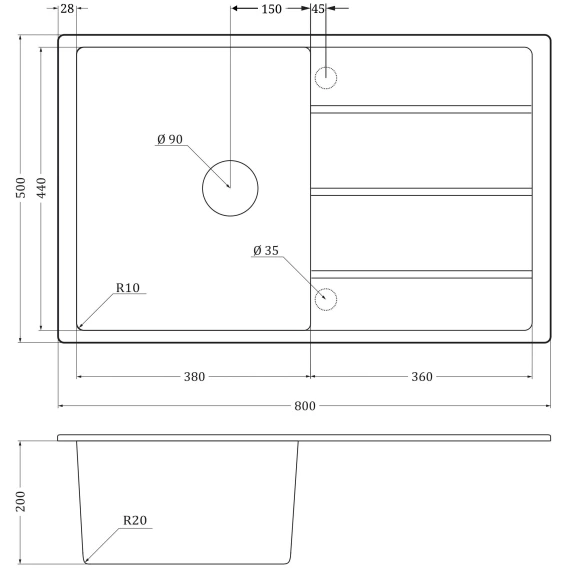 Кухонная мойка Emar Quartz EMQ-1800.Q 80x50 см, оникс