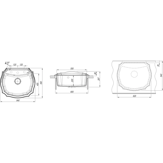 Кухонная мойка Florentina Эмилия 640 20.355.D0640.307 64x55 см, серый шелк