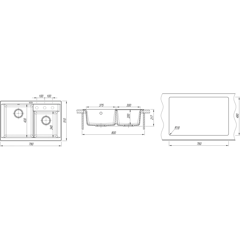 Кухонная мойка Florentina Касси 780 20.230.E0780.102 78x51 см, черный