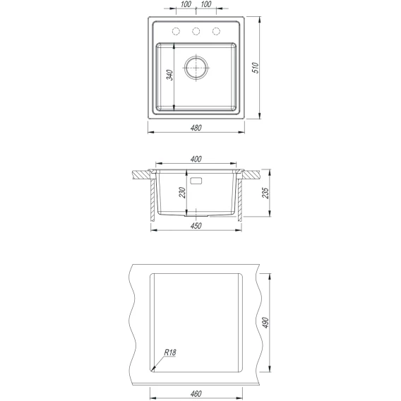 Намеченных отверстий для смесителя