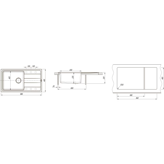 Кухонная мойка Florentina Тоскана 860 17.050.D0860.102 86x51 см, черный