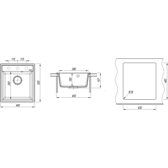 Намеченных отверстий для смесителя