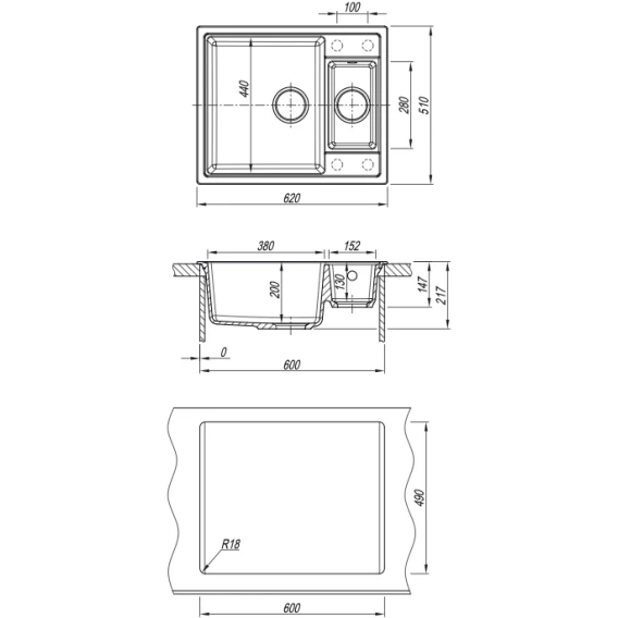 Кухонная мойка Florentina Липси 620К 20.465.D0620.206 62x51 см, брауни