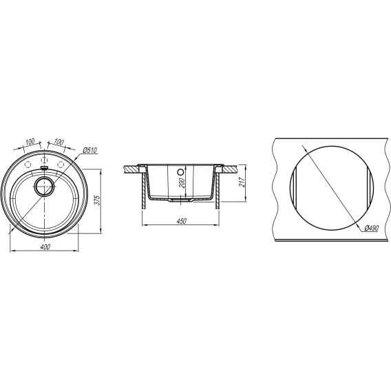 Намеченных отверстий для смесителя