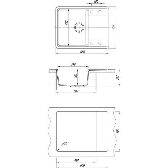 Кухонная мойка Florentina Пьемонт 650 17.030.C0650.302 65x51 см, антрацит