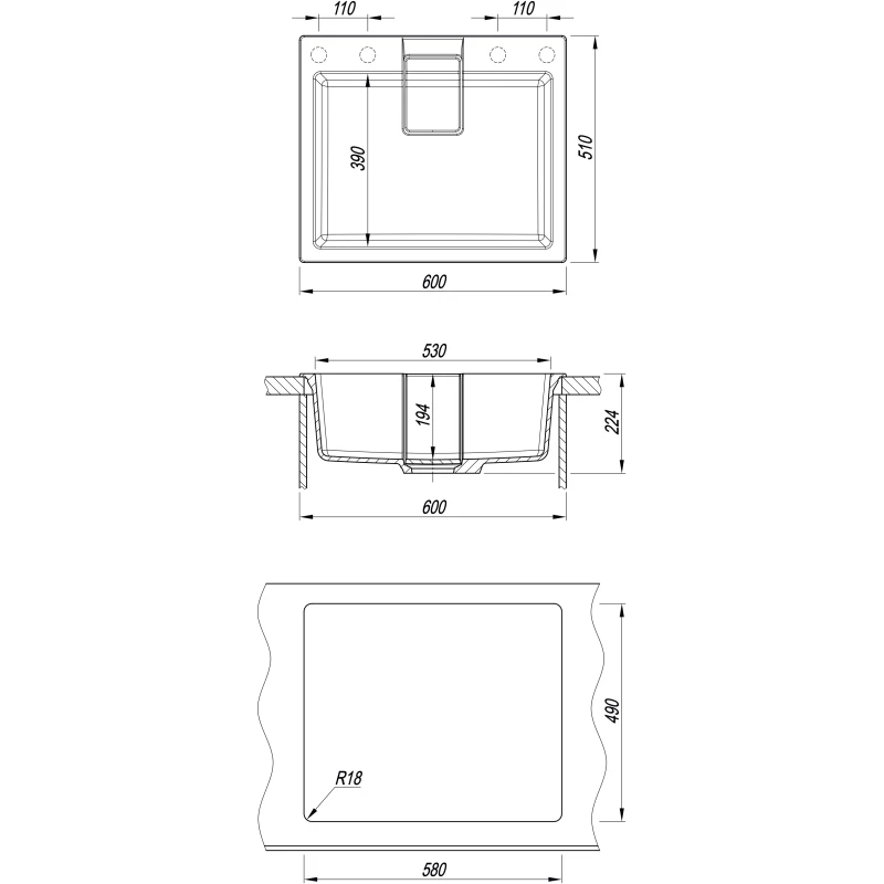 Кухонная мойка Gappo GS7246-6 72x46 см, графит матовый