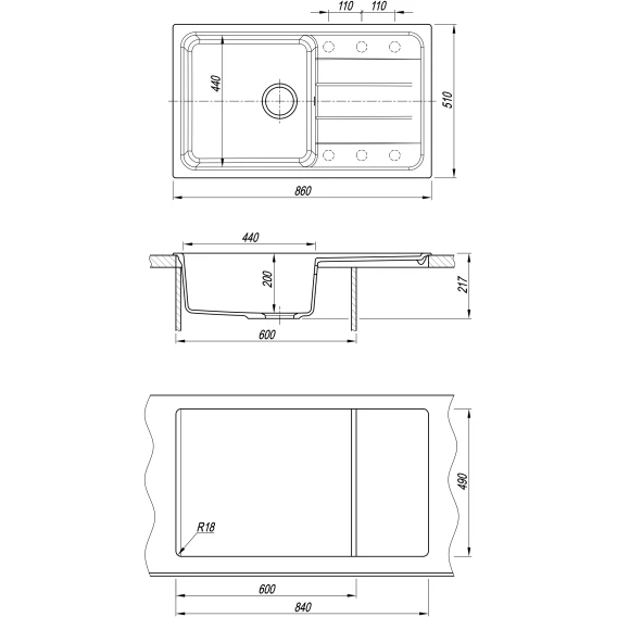 Кухонная мойка Florentina Специя 860 17.060.D0860.201 86x51 см, жасмин
