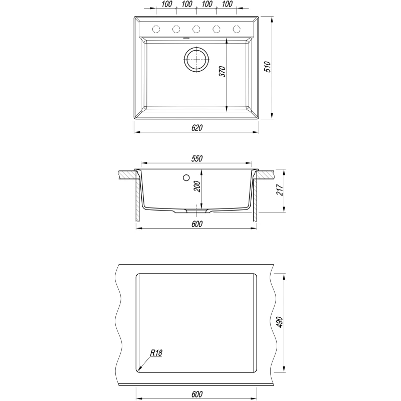 Кухонная мойка Emar Quartz EMQ-1700.Q 70x50 см, оникс