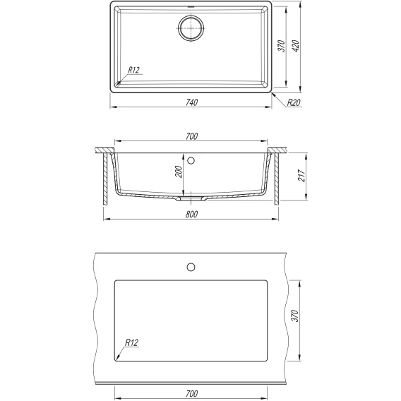 Кухонная мойка Florentina Вега 700 22.435.E0700.305 74x42 см, грей