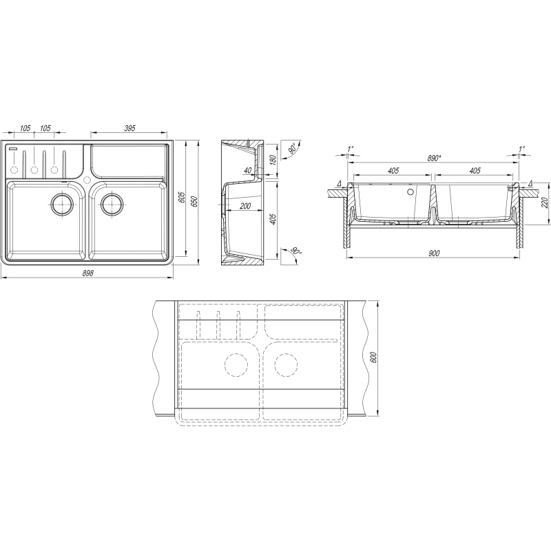 Отводная арматура с двумя корзинчатыми вентилями 3 1/2'', Разделочная доска, Сифон