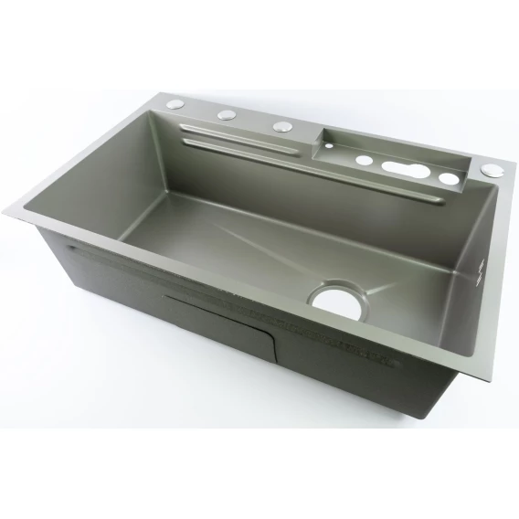 Fmark FSC002T — функциональное и стильное решение для современной кухни. Мойка выполнена из прочной нержавеющей стали AISI 201 в сером цвете с сатинированной поверхностью. Благодаря богатой комплектации и продуманному управлению, она объединяет в себе зону мойки, подготовки продуктов и подачи воды — всё в одном корпусе.