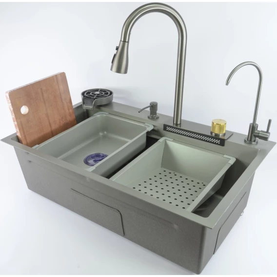 Кухонная мойка Fmark FSC003T 75x46 см, многофункциональная, серый