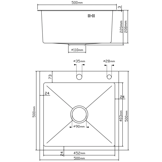 второе — под дозатор - Диаметр сливного отверстия: 3½″ (90 мм)