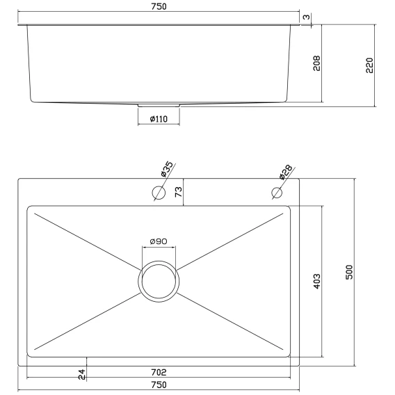 - Размер мойки: 750 × 500 мм