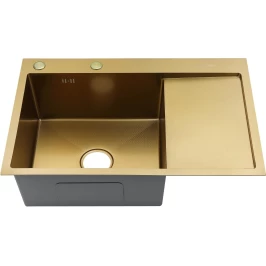 Мойка Fmark FSC7550C-L — это удачное сочетание функциональности и элегантного внешнего вида. Стильное матовое золотое покрытие, глубокая чаша и удобное крыло делают её практичным и долговечным выбором для кухни. Эта модель не только облегчает работу, но и станет ярким элементом интерьера.