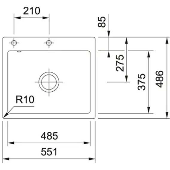 Намеченных отверстий для смесителя