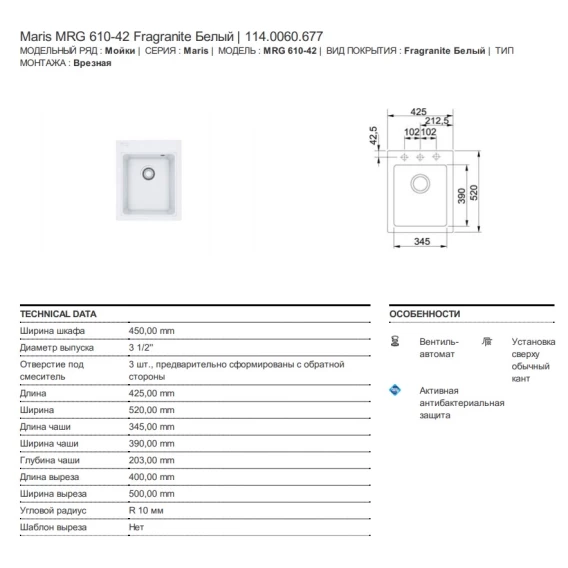 Кухонная мойка Fragranit Franke Maris MRG 610-42 белый 114.0060.677