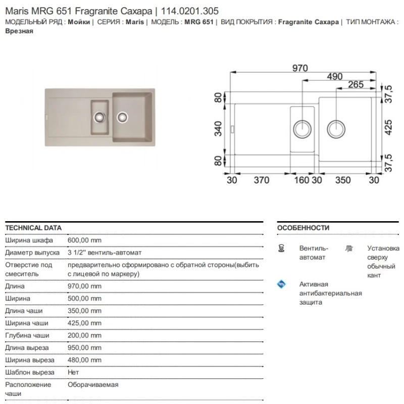 Кухонная мойка Fragranit Franke Maris MRG 651 сахара 114.0201.305