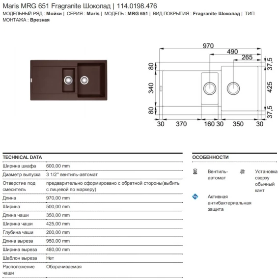 Кухонная мойка Fragranit Franke Maris MRG 651 шоколад 114.0198.476