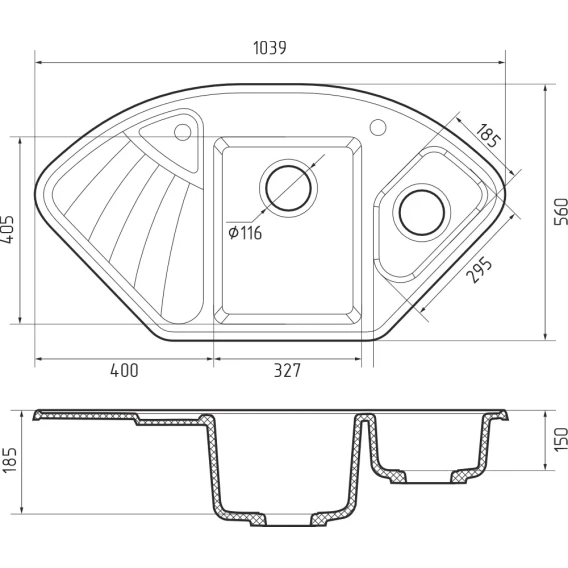 Кухонная мойка GranFest Corner 1040E 103,9x56 см, серый