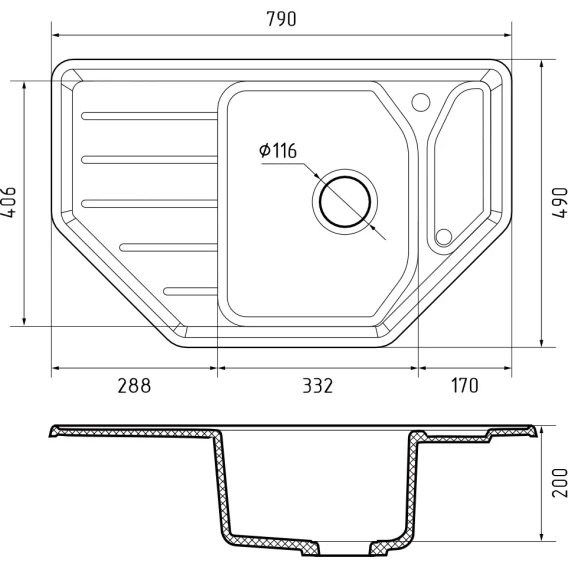 Кухонная мойка GranFest Corner 800E 79x49 см, графит