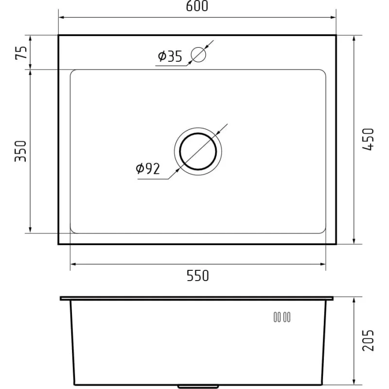 Кухонная мойка GranFest Metal 6045 PVD графит 60x45 см, графит