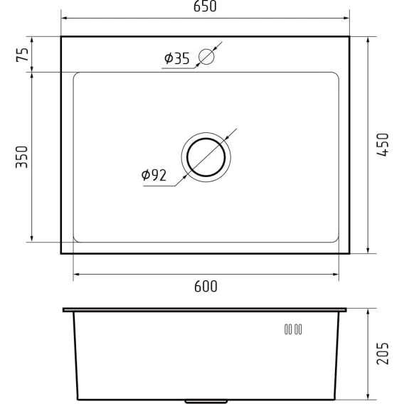 Кухонная мойка GranFest Metal 6545 PVD графит 65x45 см, графит