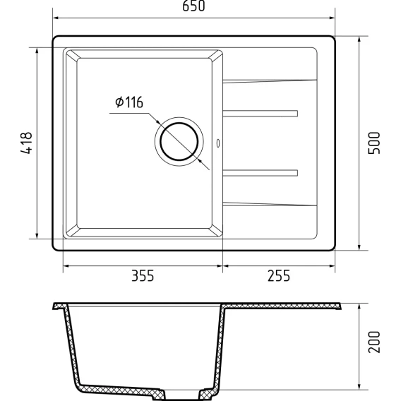 Кухонная мойка GranFest Quadro 650L 65x50 см, топаз