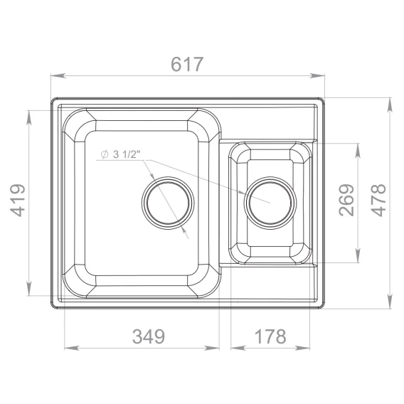 Кухонная мойка GranFest Quarz 09 61,7x47,8 см, темно-серый