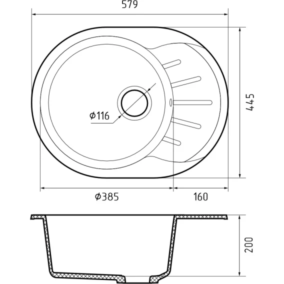 Кухонная мойка GranFest Rondo 580L 57,9x44,5 см, кашемир