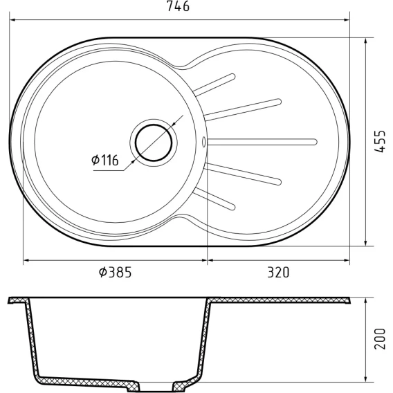 Кухонная мойка GranFest Rondo 750L 74,6x45,5 см, графит