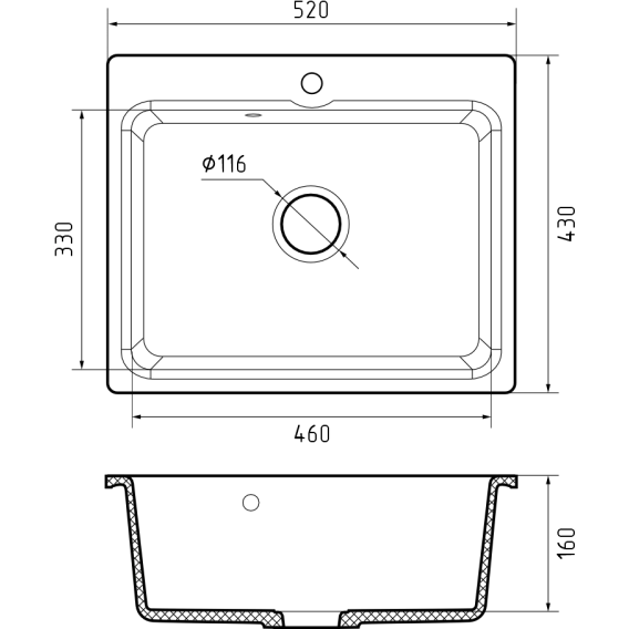 Кухонная мойка GranFest Smart 520 52x43 см, черный