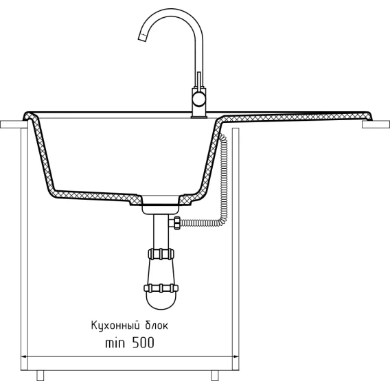Кухонная мойка GranFest Unique 840L 84x50 см, иней